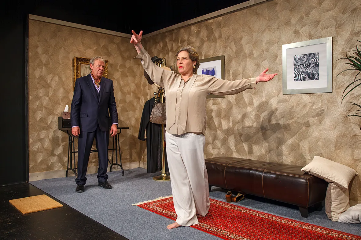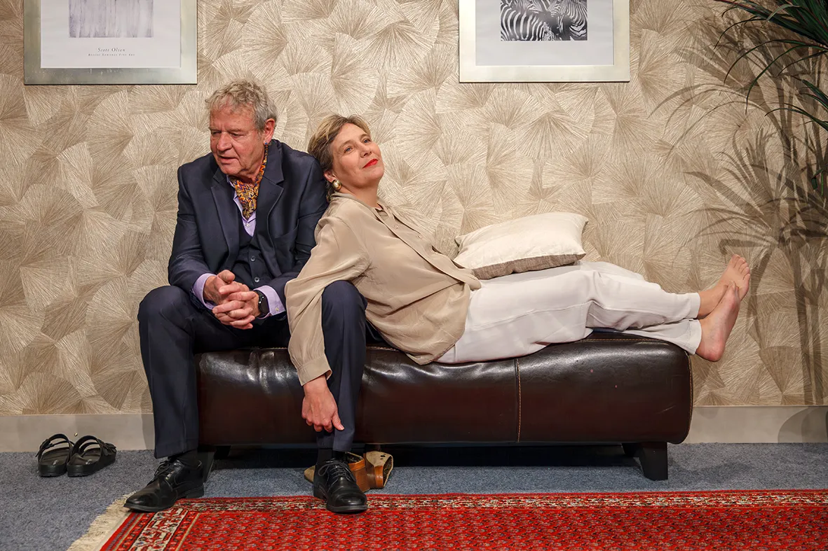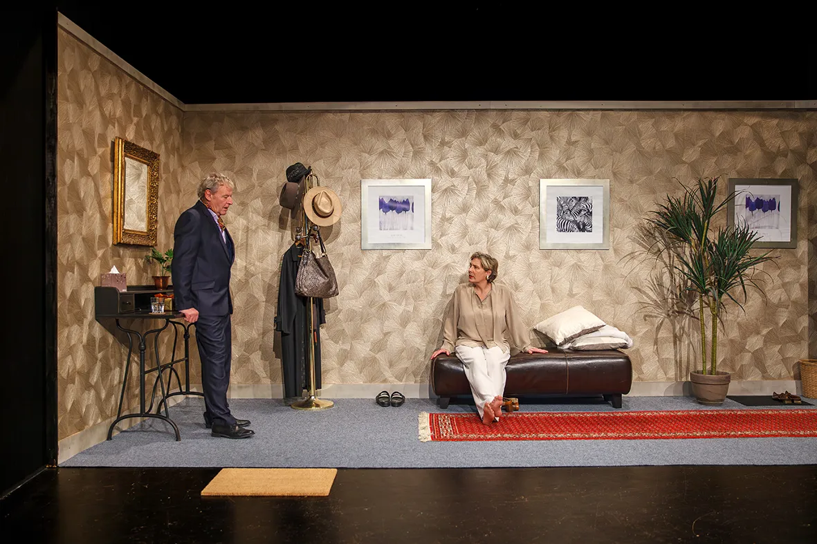 Anderthalb Stunden zu spät ist eine typisch französische Beziehungskomödie mit rasanten Wortgefechten und erquickenden Dialogen. Er steht bereit für das bevorstehende Abendessen bei seinem Geschäftspartner, an den er seine Anteile an der gemeinsamen Firma verkauft hat. Das soll gefeiert werden. Man ist spät dran. Mit wachsender Anspannung wartet er auf seine Frau. Sie nimmt sich Zeit, denn ihr ist nicht nach Feiern zumute, auch nicht auf ein langweiliges Geschäftsessen mit Alibifreunden. Sie hat keine Lust auf inhaltslose Konversation und träge Geselligkeit. Ihr Bedürfnis ist Zweisamkeit, intensive Gespräche, Rebellion statt Ruhestand. Mit viel Humor und Schlagfertigkeit sezieren die beiden ihr Leben und die gemeinsame Beziehungsgeschichte. Bis sie dann doch noch zur geplanten Verabredung aufbrechen, allerdings anderthalb Stunden zu spät.