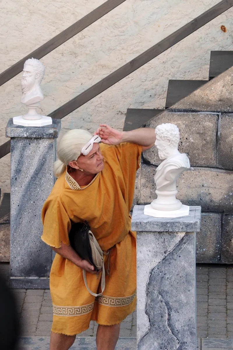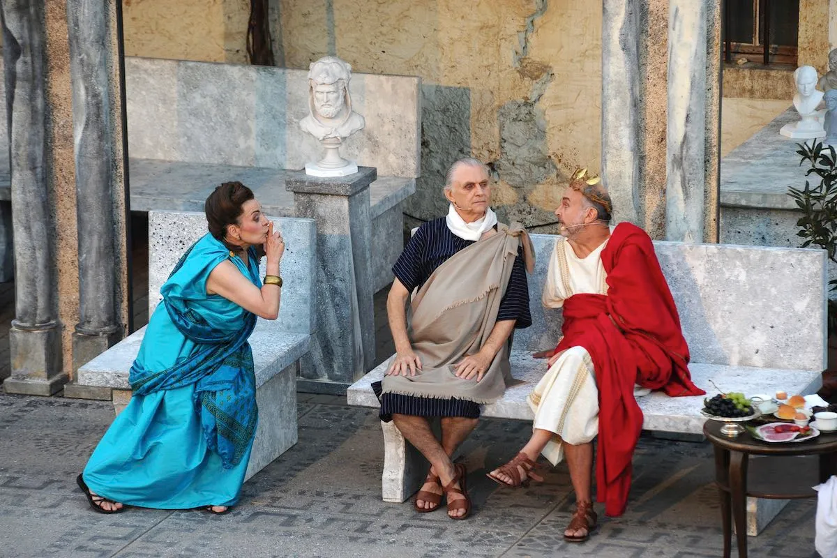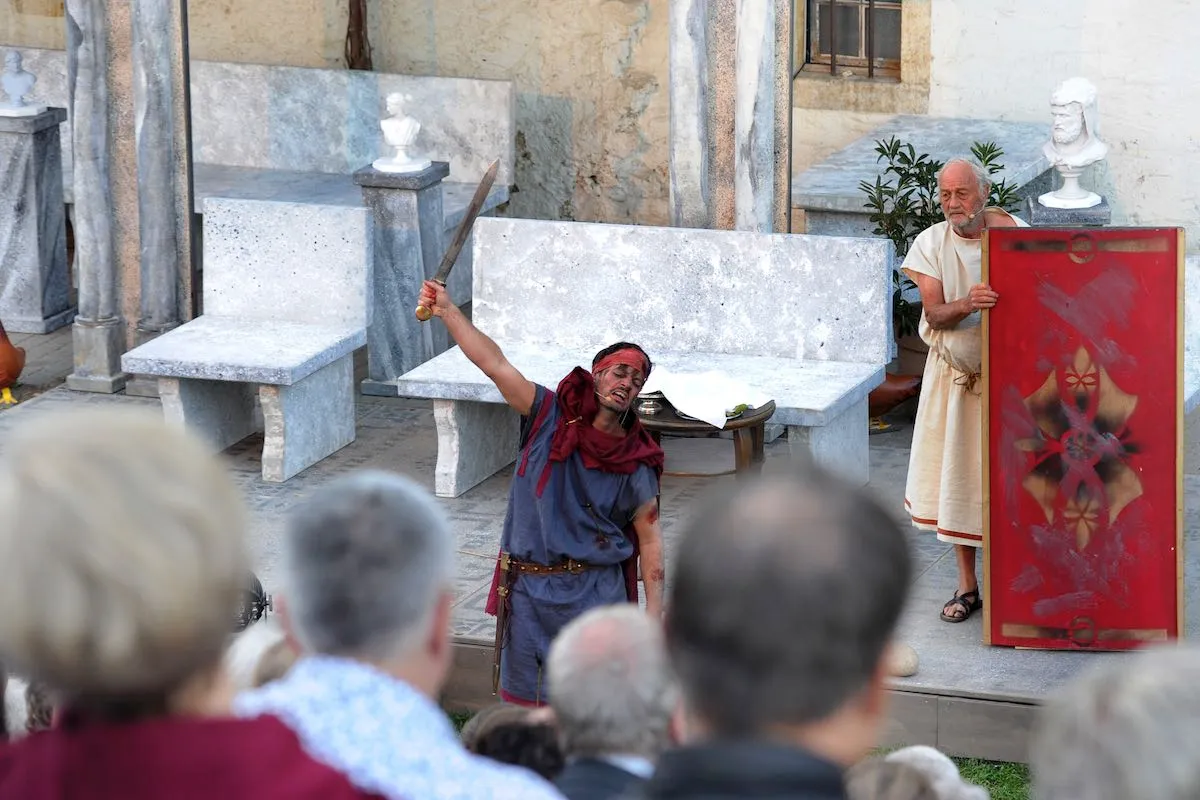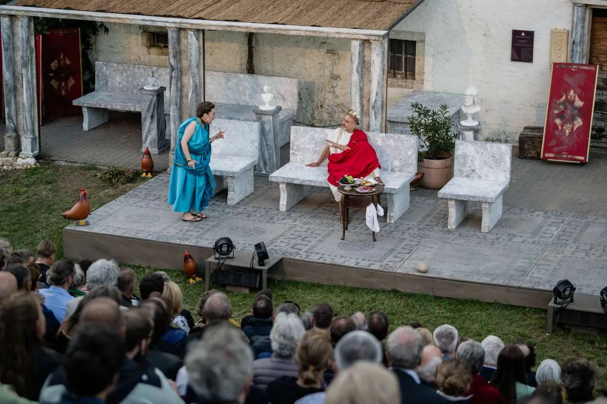 Das «Stück Romulus der Große» erzählt den Untergang des römischen Reiches. Rund 20 Darstellerinnen und Darsteller schlüpfen in die Toga und warten auf die anrückenden Germanen. Auf die Begegnung von Romulus mit dem Germanenfürsten Odoaker dürfen Sie gespannt sein! Dürrenmatt beobachtete die Vorgänge in der Politik stets aufmerksam, seine beissenden Kommentare waren von den Obrigkeiten gefürchtet und vom Volk geliebt. Am meisten kritisierte er die Ungerechtigkeiten der Grossmächte. Als hätte er das Stück für unsere Zeit geschrieben! Obschon der Inhalt ernst ist, lachen wir über die krausen Ideen der Leute am Hof, es ist, als hätten wir es mit lauter Hofnarren zu tun. Aber das Lachen vergeht auch immer wieder, wenn die Masken fallen.