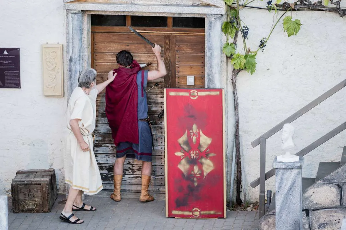 Das «Stück Romulus der Große» erzählt den Untergang des römischen Reiches. Rund 20 Darstellerinnen und Darsteller schlüpfen in die Toga und warten auf die anrückenden Germanen. Auf die Begegnung von Romulus mit dem Germanenfürsten Odoaker dürfen Sie gespannt sein! Dürrenmatt beobachtete die Vorgänge in der Politik stets aufmerksam, seine beissenden Kommentare waren von den Obrigkeiten gefürchtet und vom Volk geliebt. Am meisten kritisierte er die Ungerechtigkeiten der Grossmächte. Als hätte er das Stück für unsere Zeit geschrieben! Obschon der Inhalt ernst ist, lachen wir über die krausen Ideen der Leute am Hof, es ist, als hätten wir es mit lauter Hofnarren zu tun. Aber das Lachen vergeht auch immer wieder, wenn die Masken fallen.